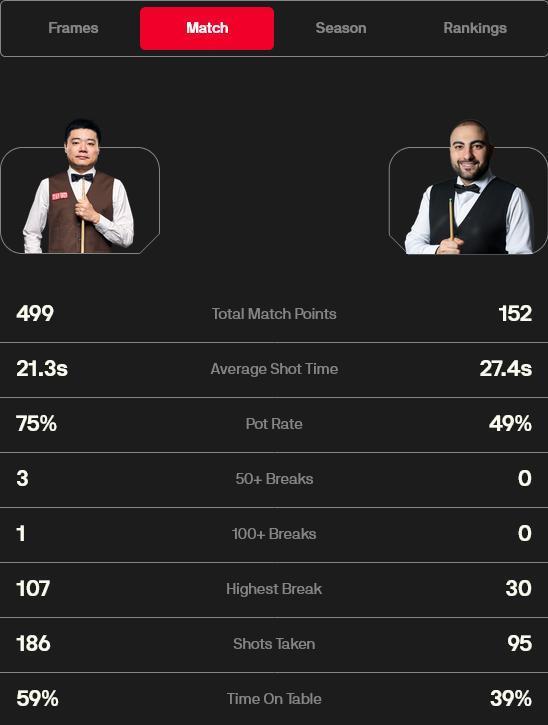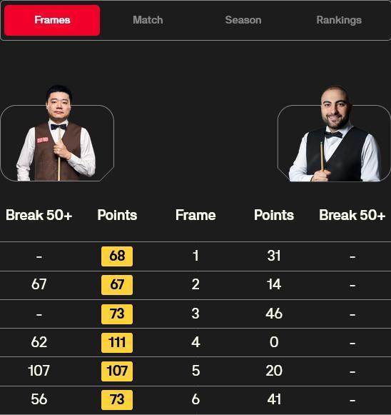 本场比赛,“中国龙”延续着前两场的追究现象,全场共打出3杆50+和1杆破百,打出一波6连鞭,大比分6-0收效,晋级正赛16强,获得了个东说念主本赛季巡回赛第7胜,继2024斯诺克武汉公开赛后,赛季第2次晋级巡回赛(名次赛)16强。